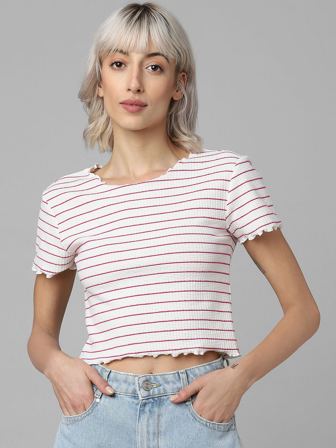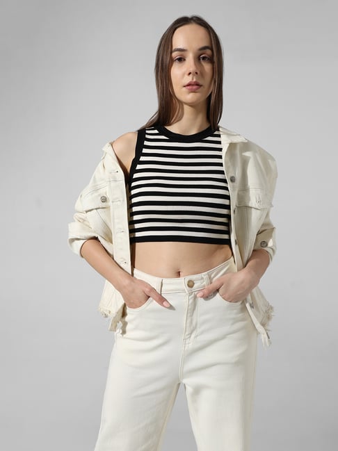 white striped crop top