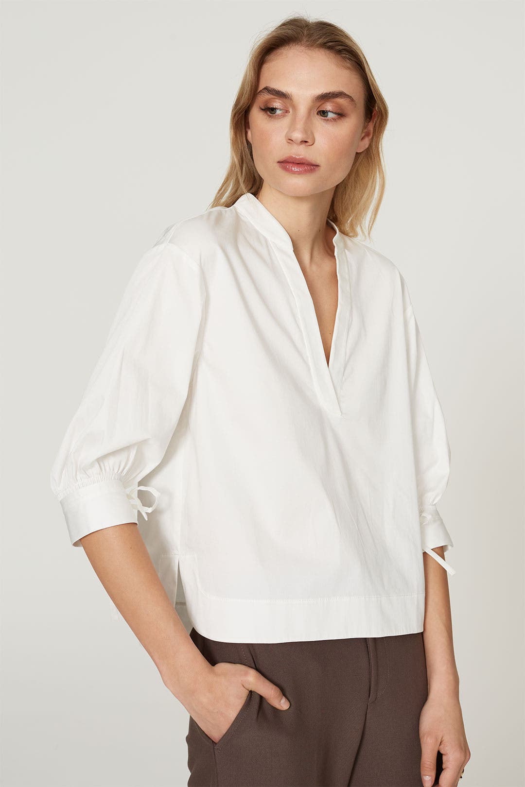white three quarter sleeve blouse