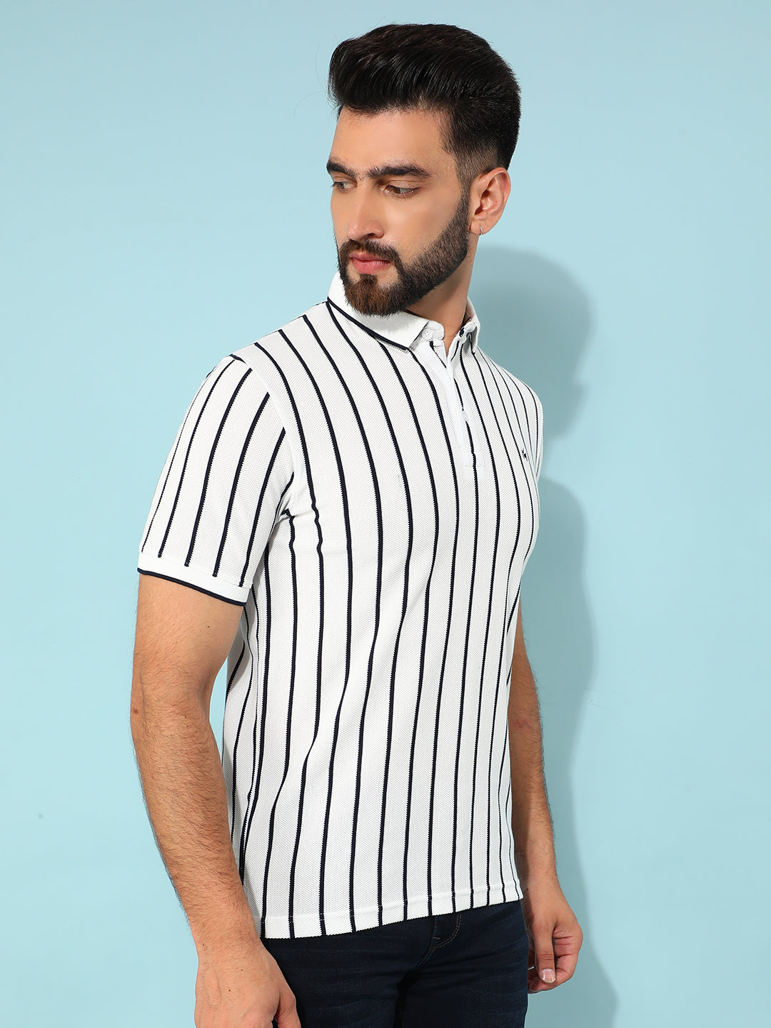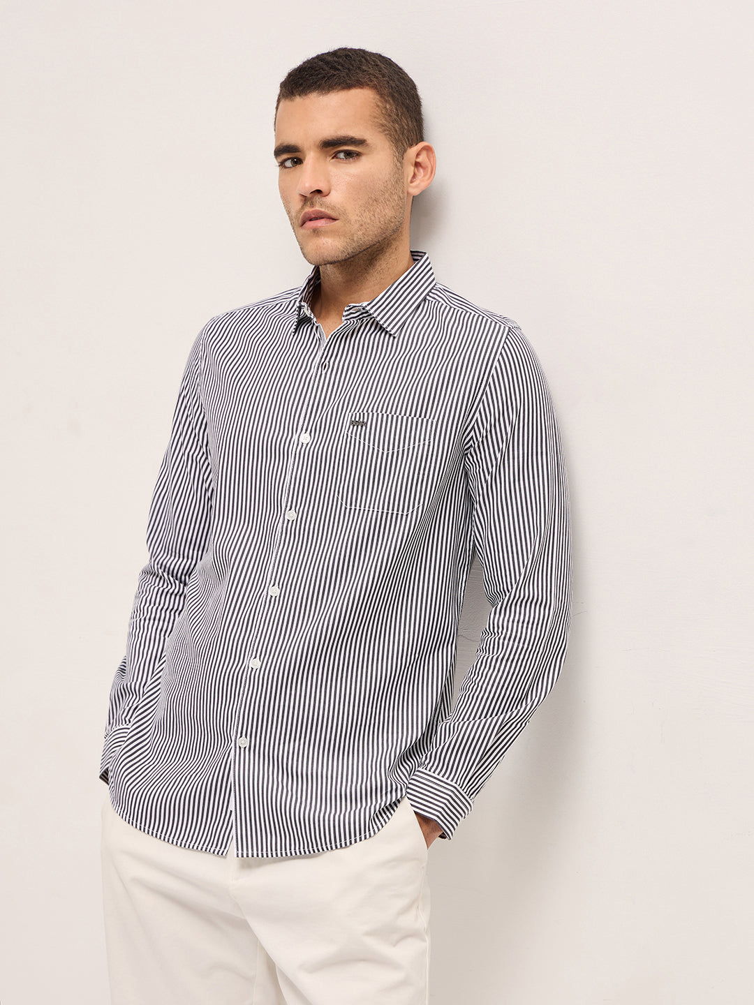white vertical striped shirt