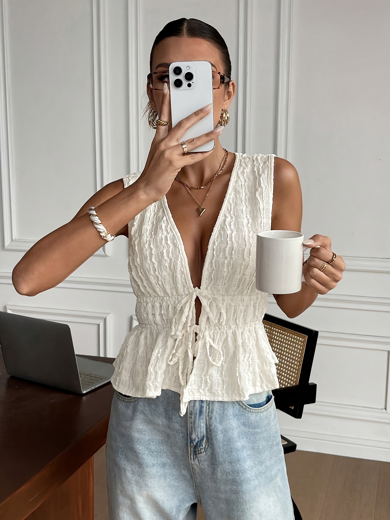 white wrap tie top