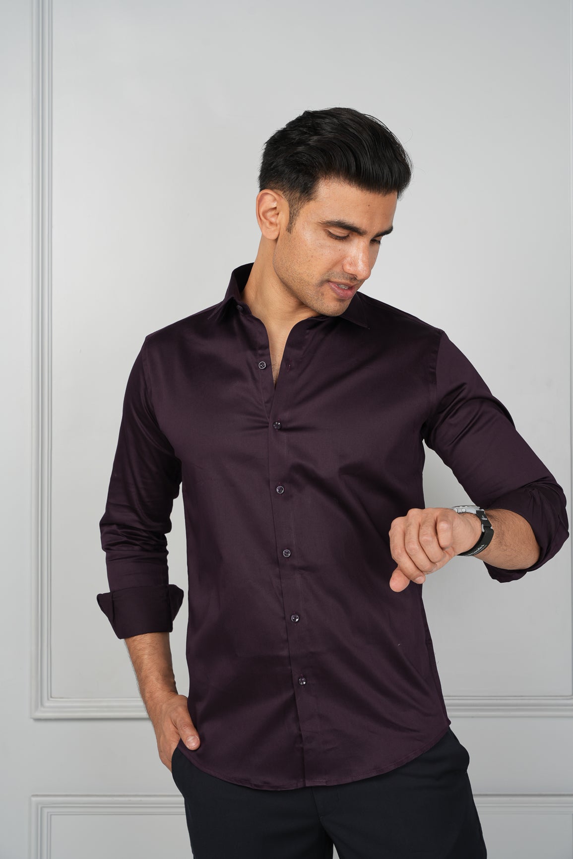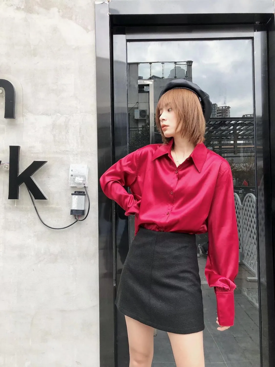 wine satin shirt
