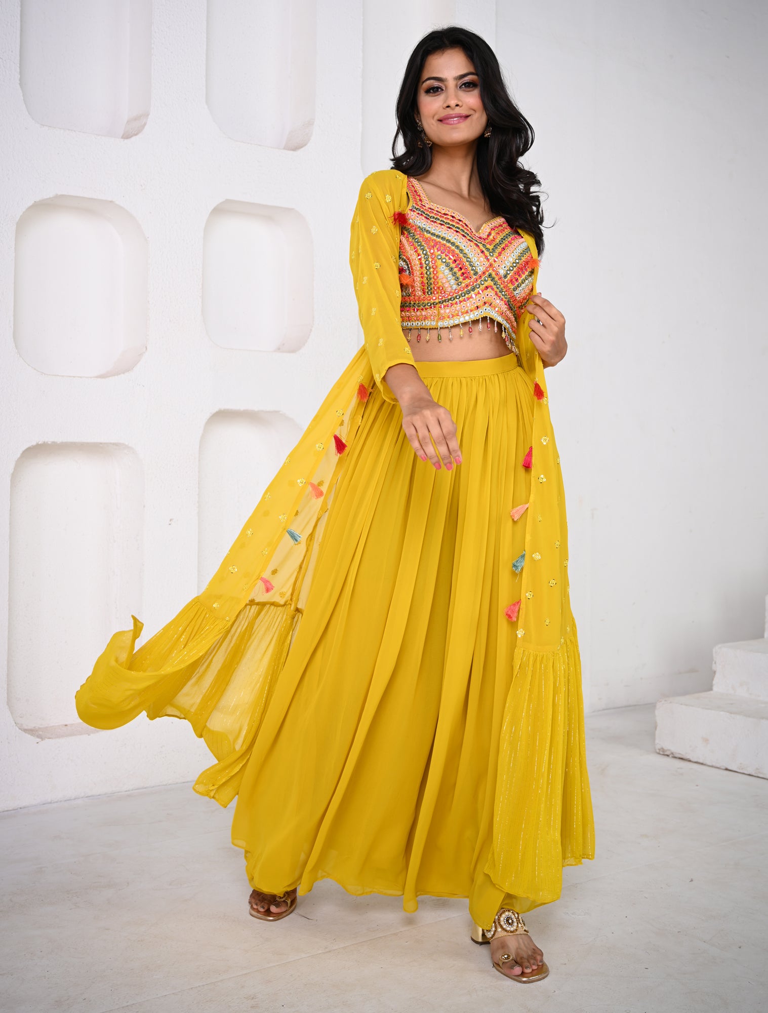 yellow crop blouse