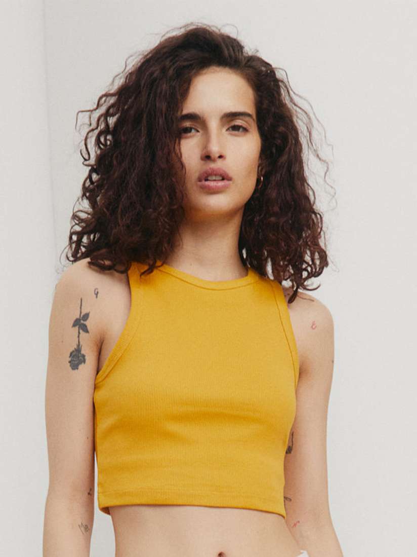 yellow crop vest