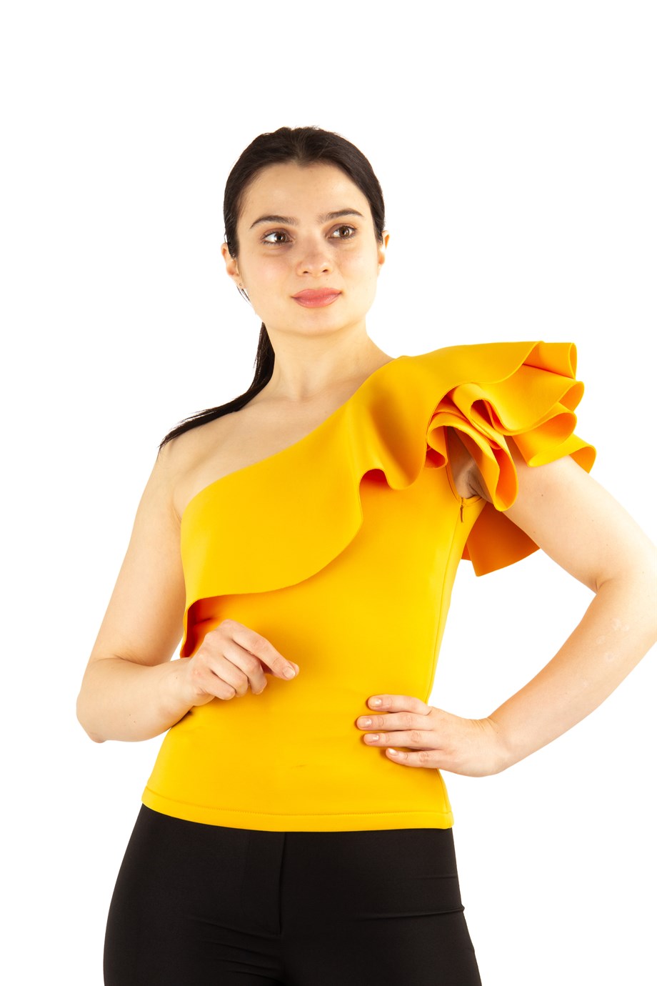 yellow one shoulder top