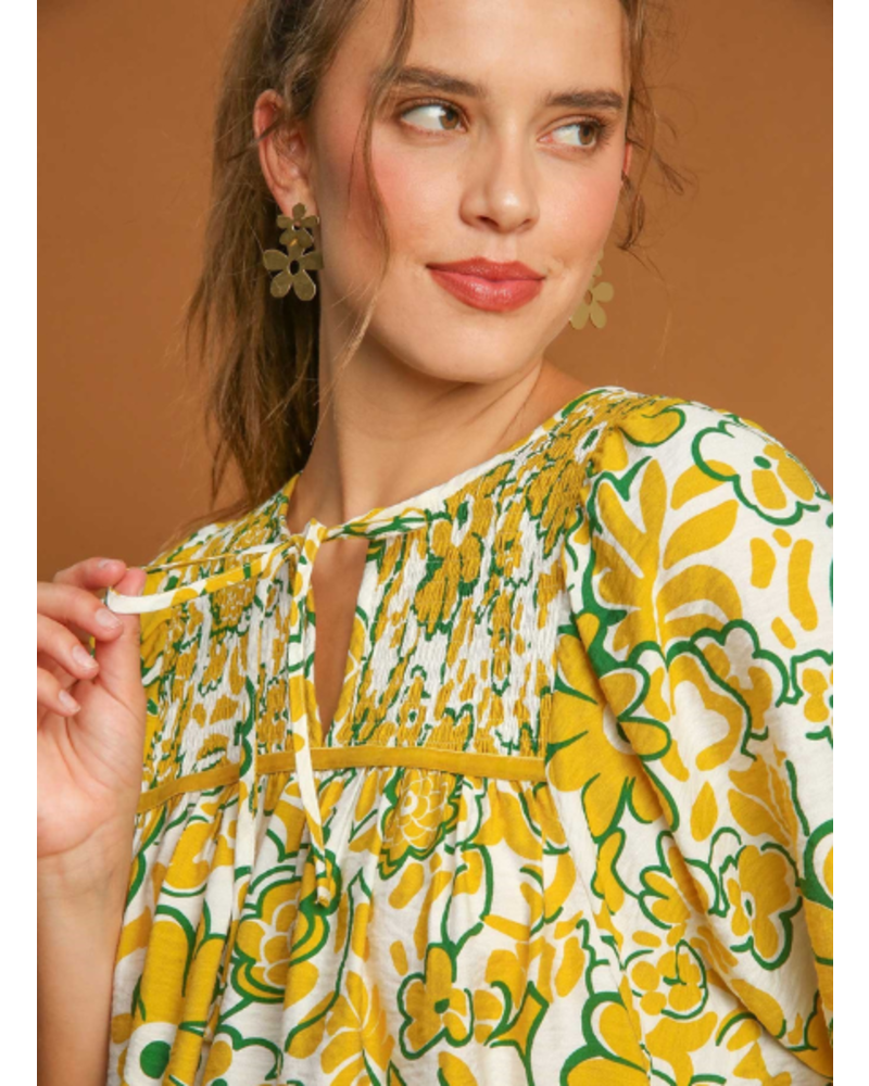 yellow print blouse