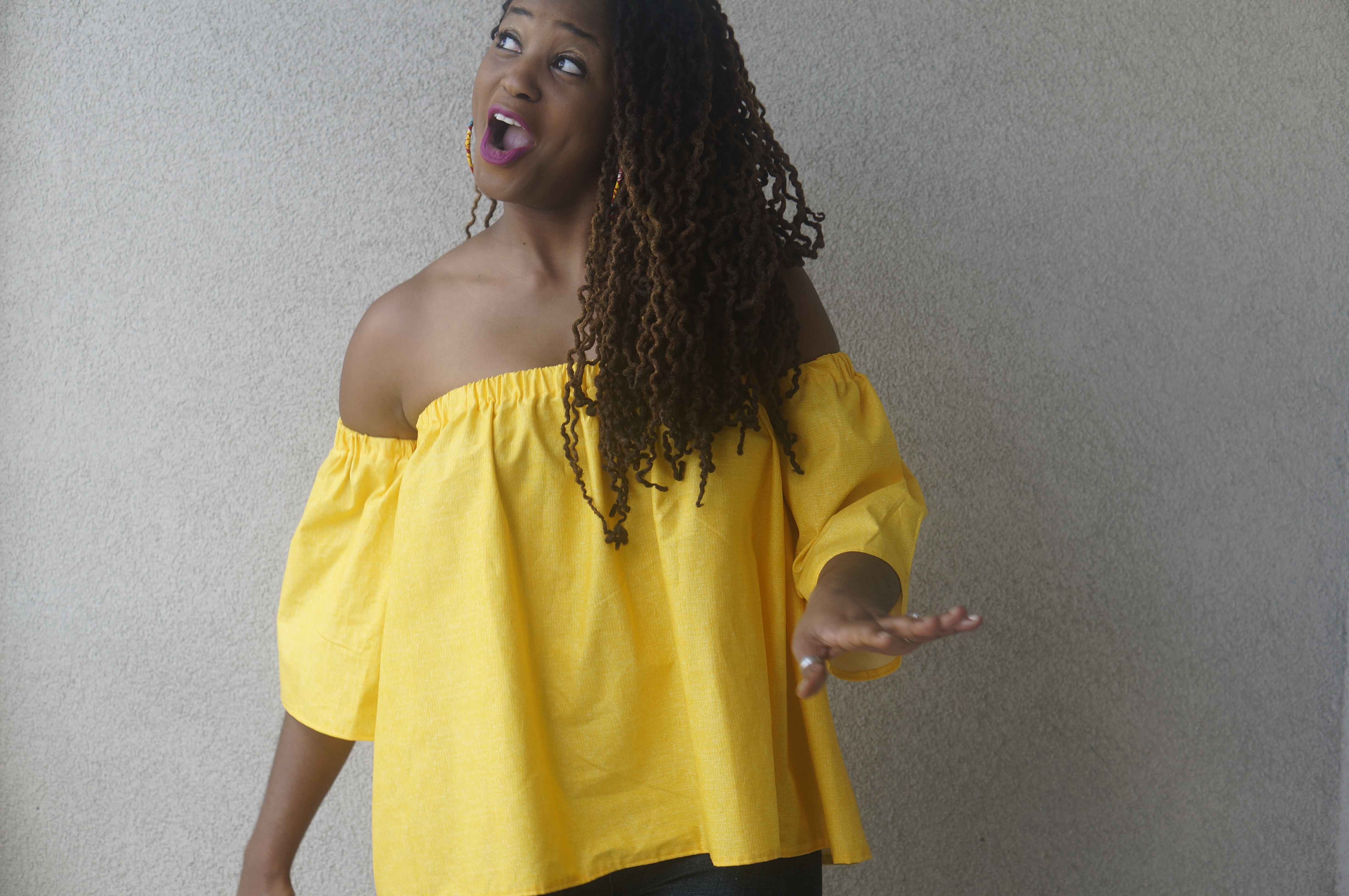 yellow top off shoulder