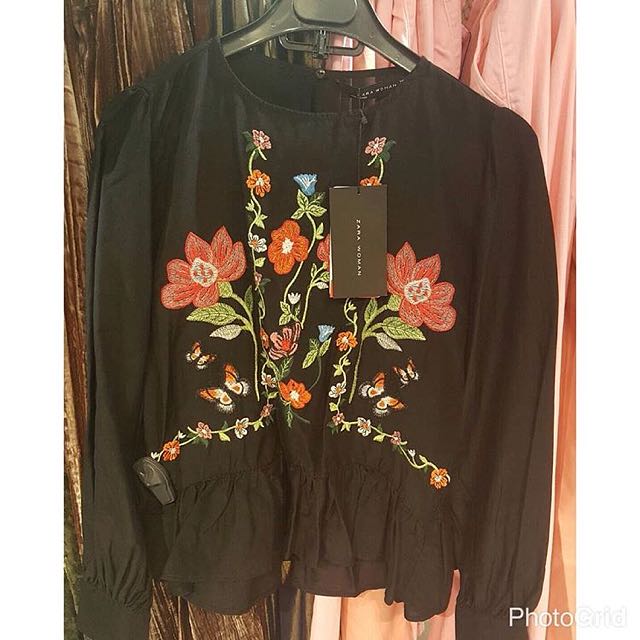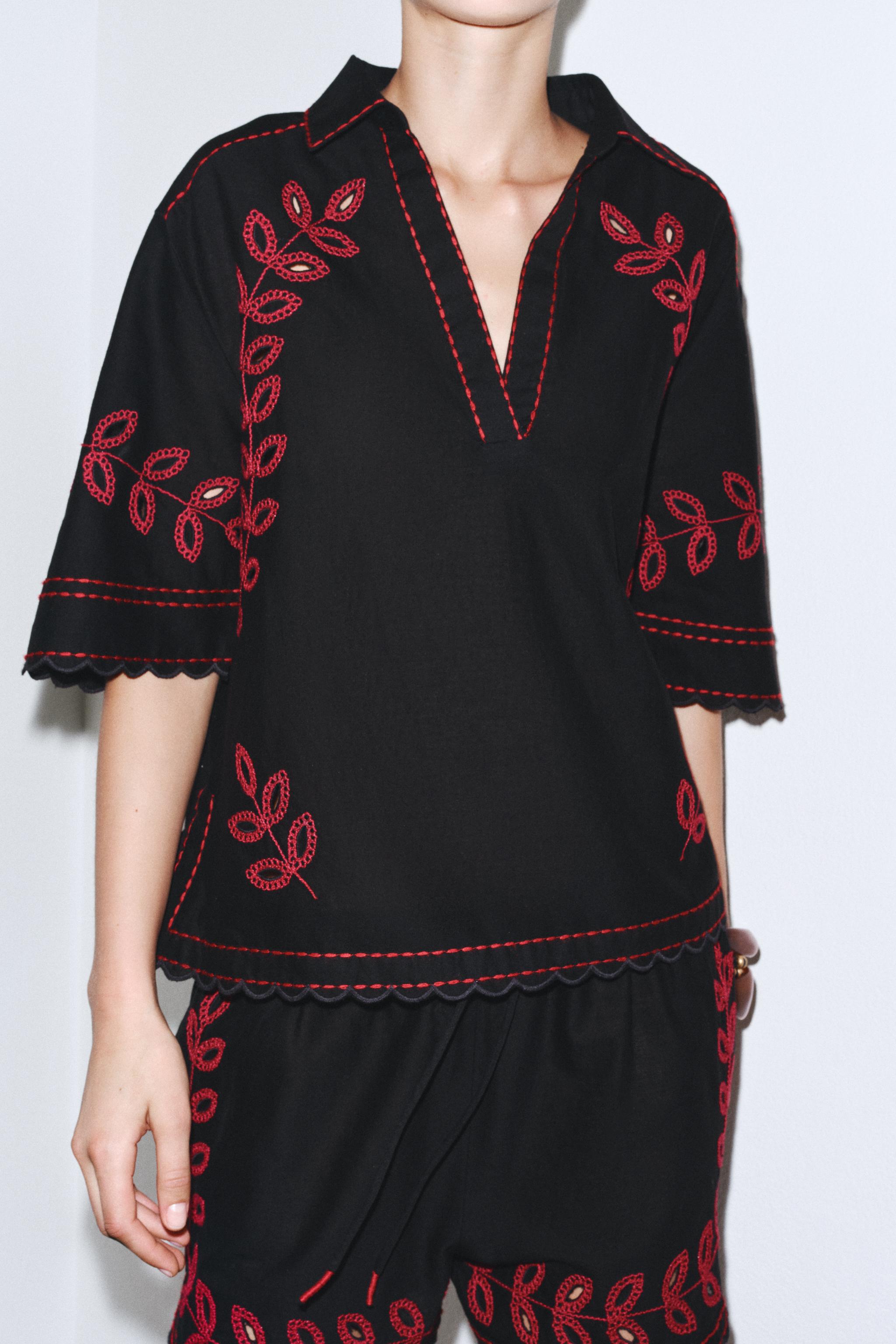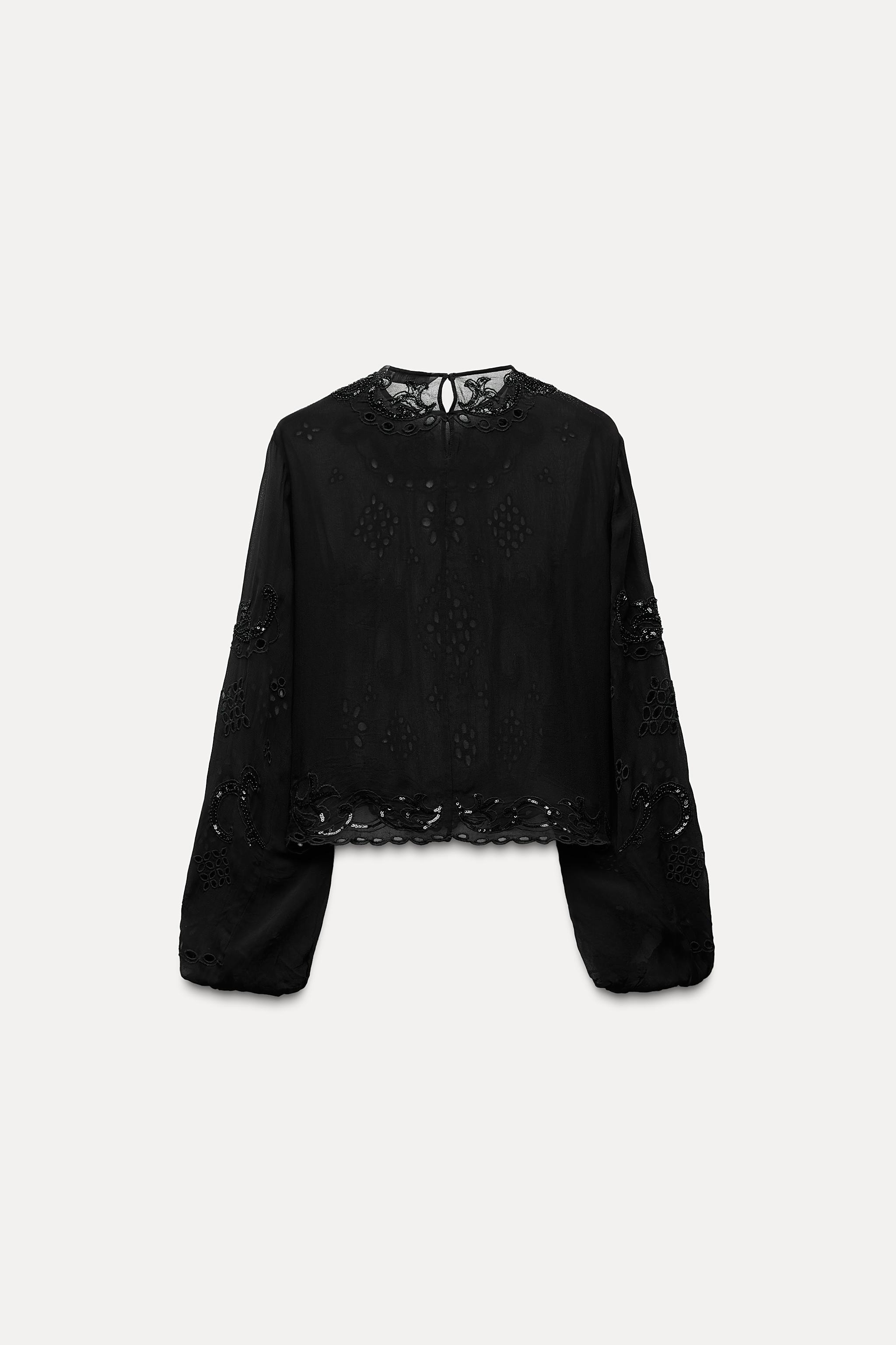 zara black embroidered top