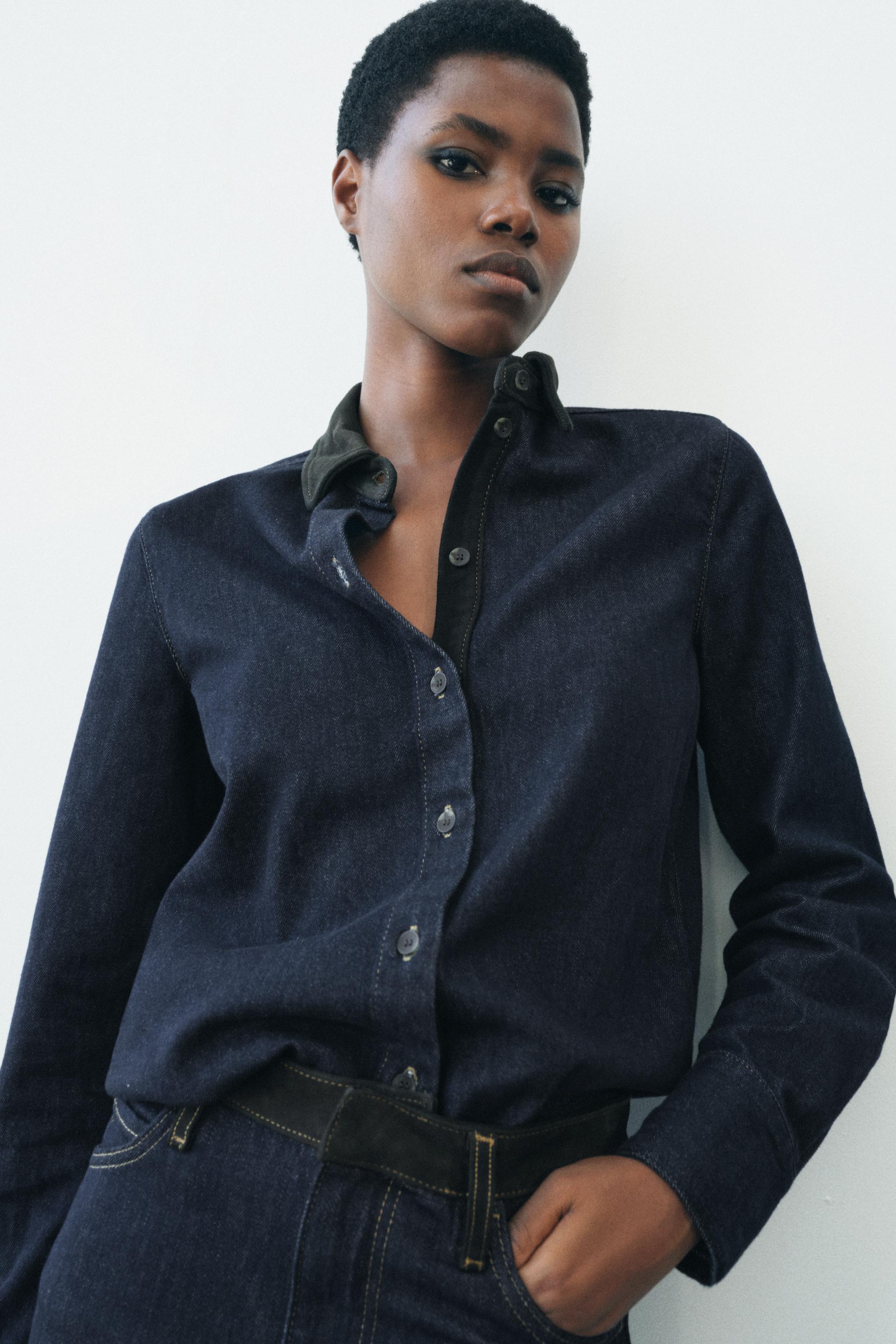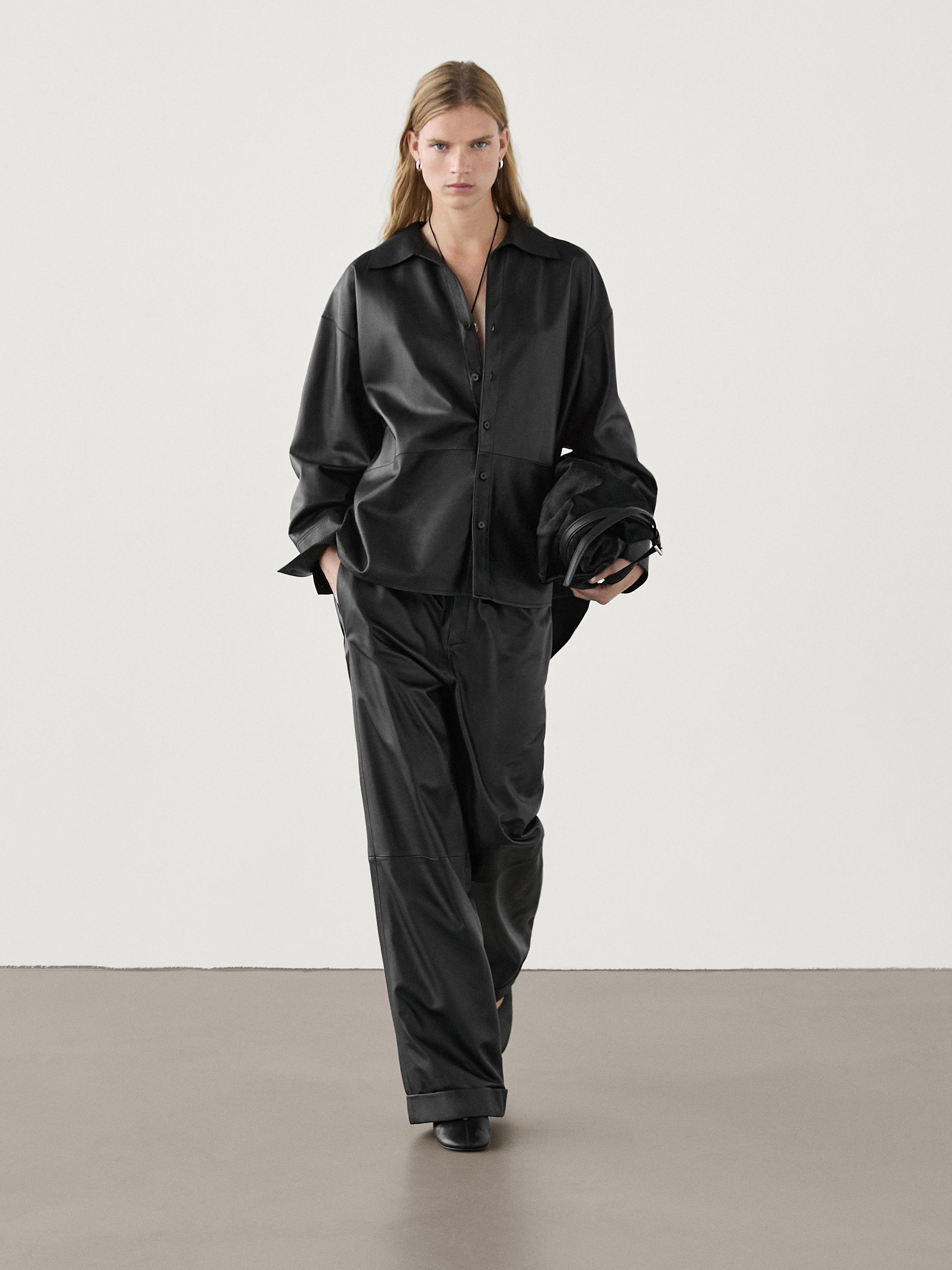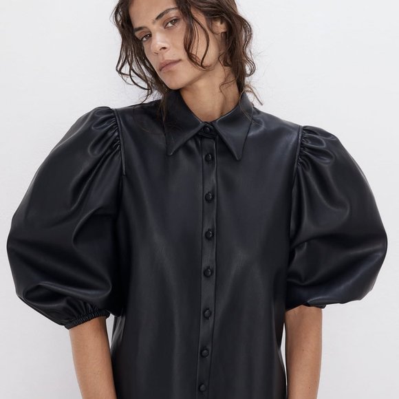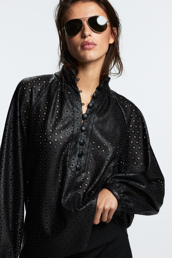 zara leather blouse