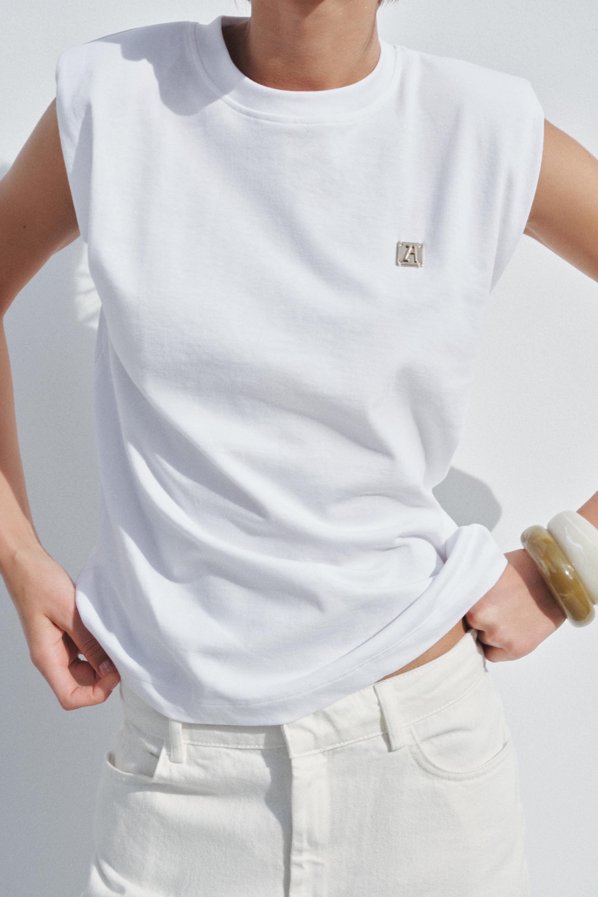 zara shoulder pad top white