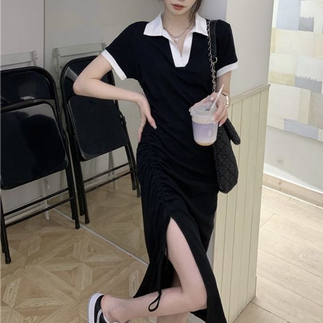 drawstring side tee dress