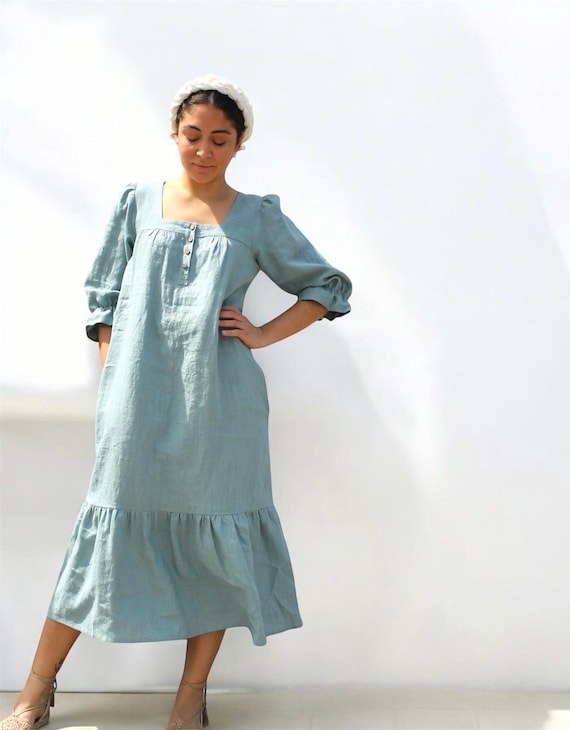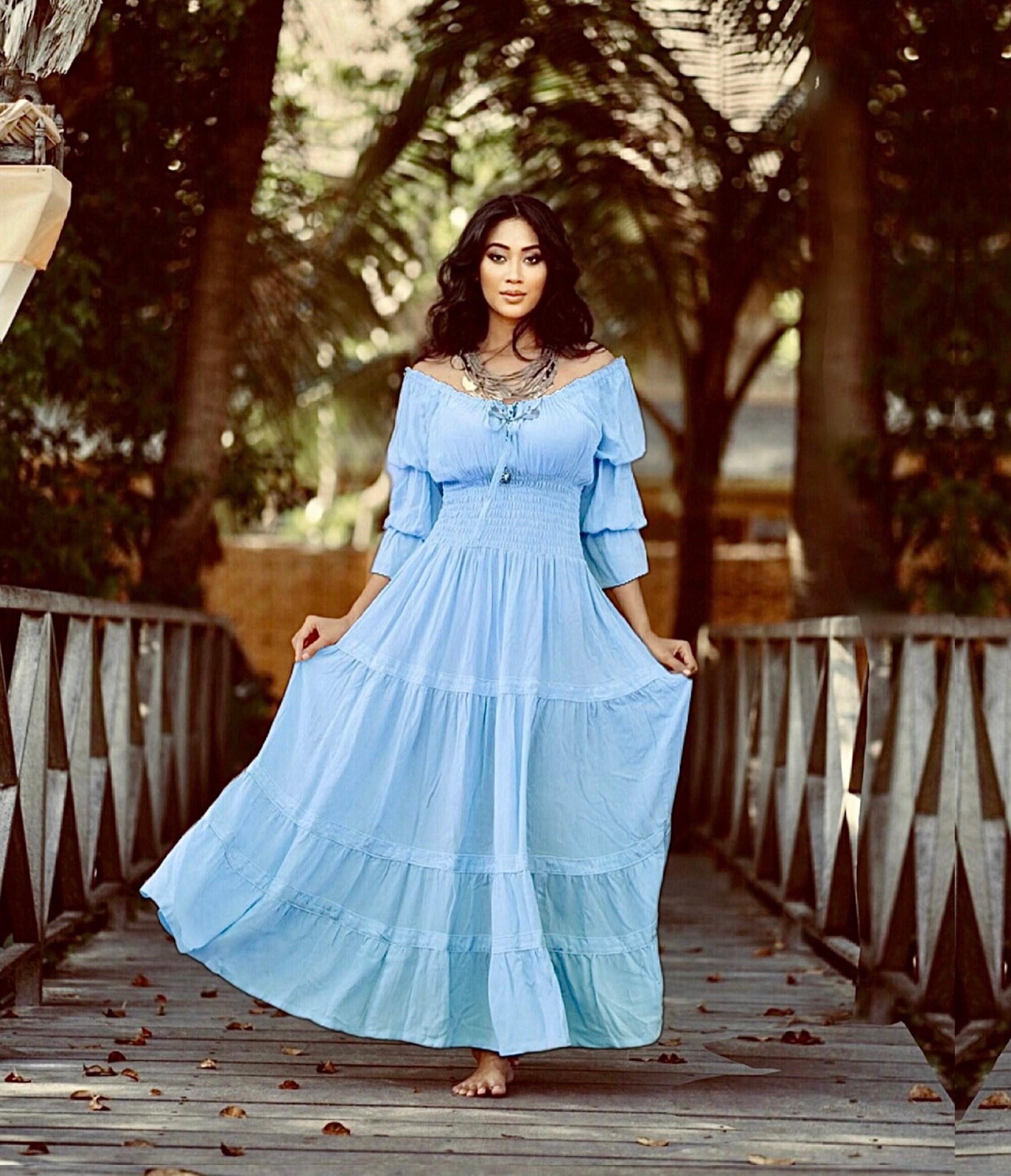light blue peasant dress