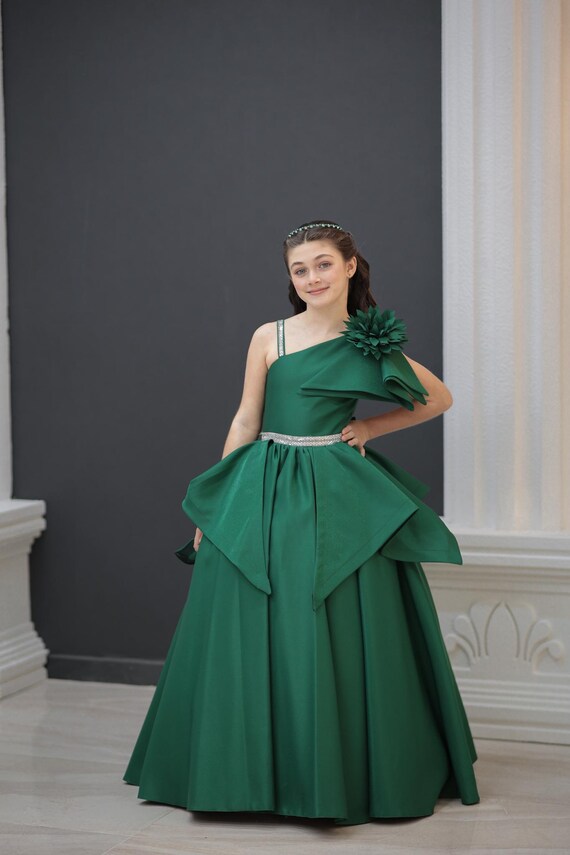one shoulder green gown