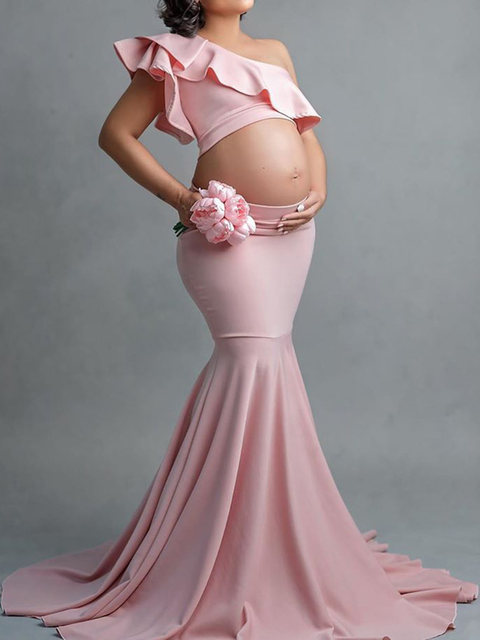 one shoulder maternity gown