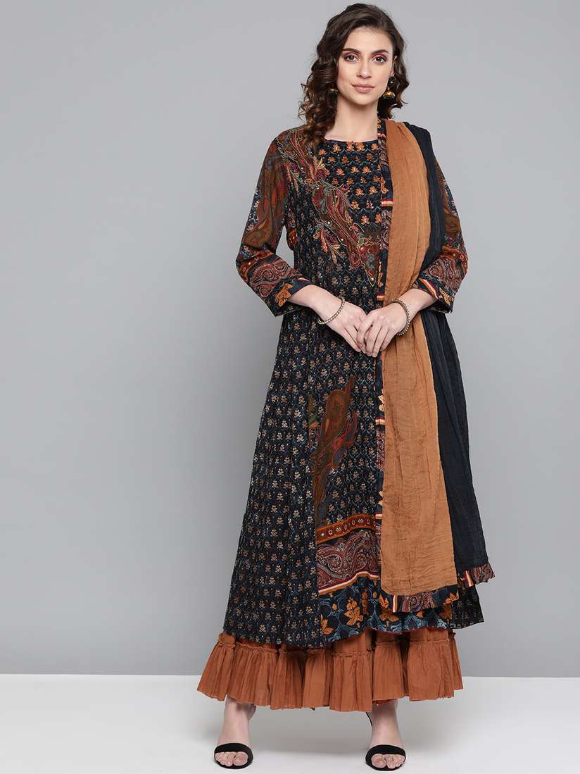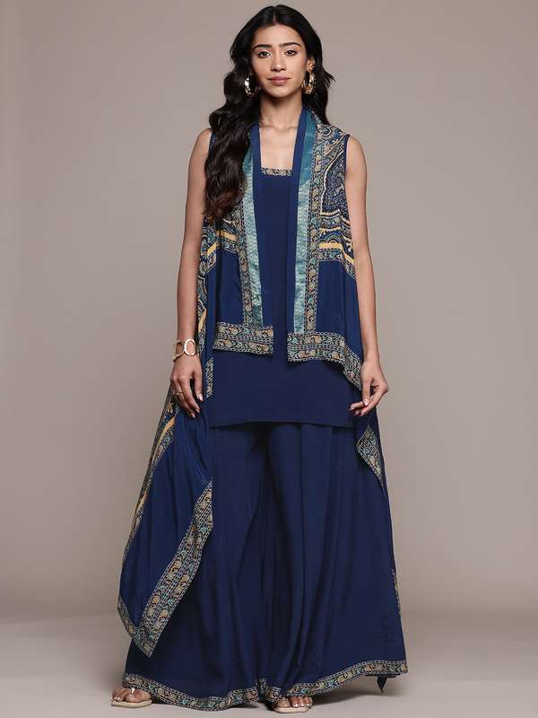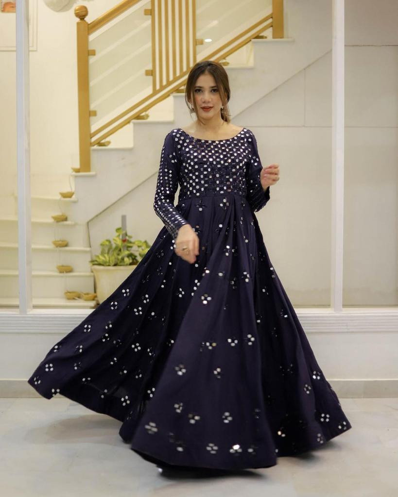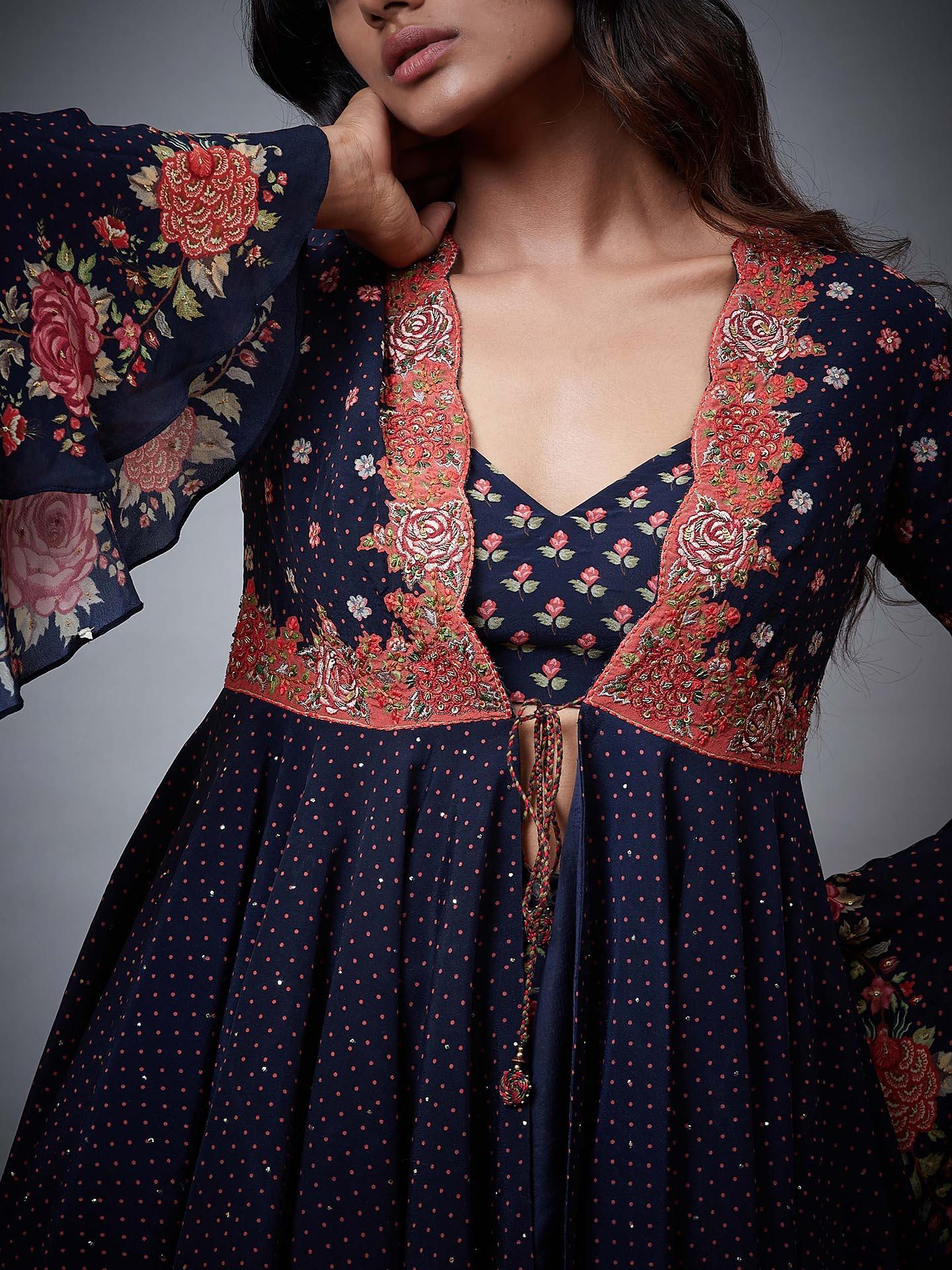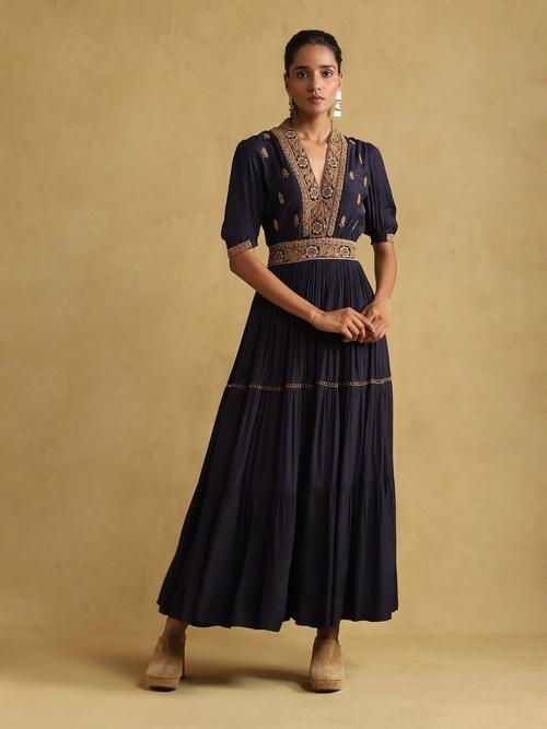 ritu kumar navy blue mirror work dress