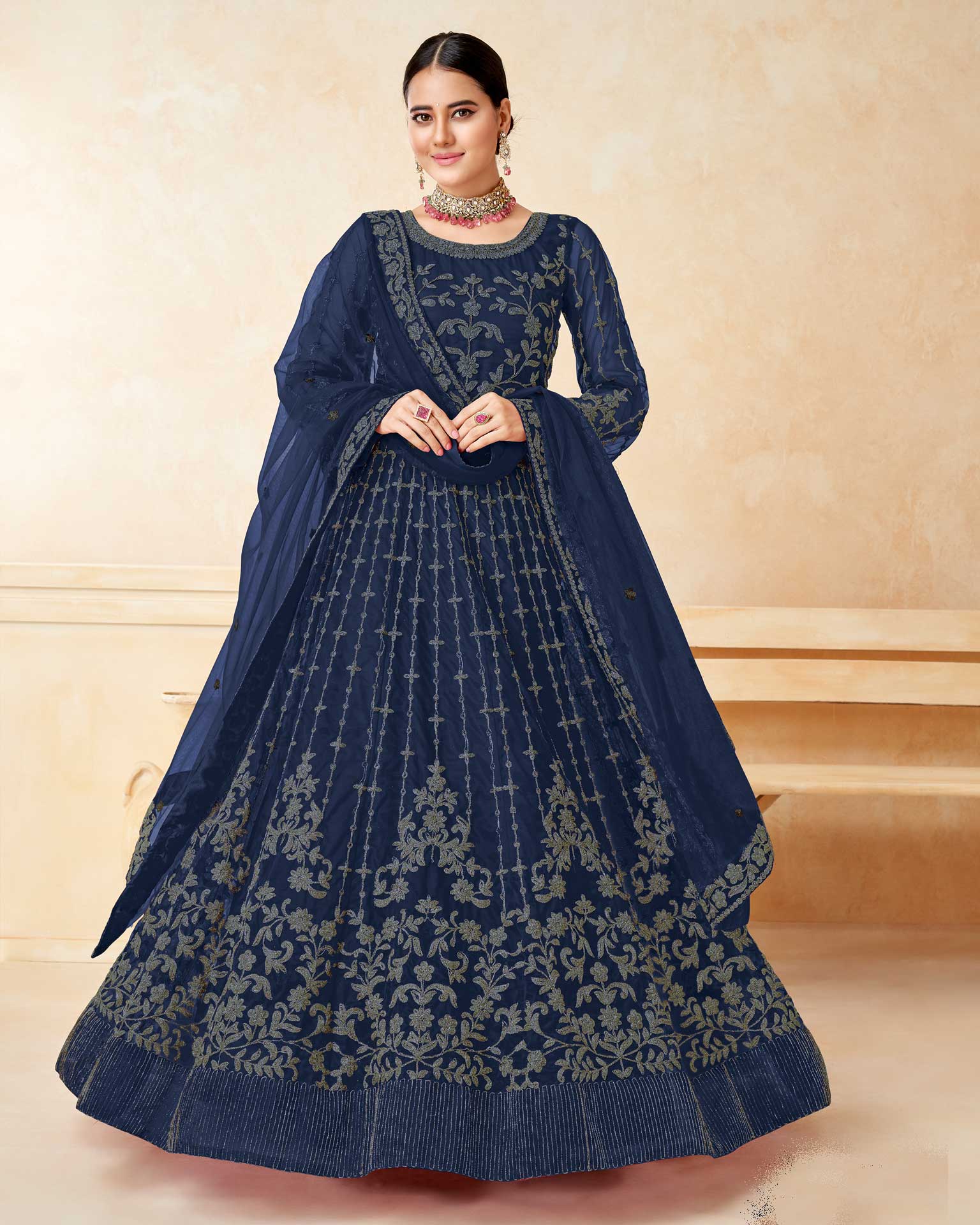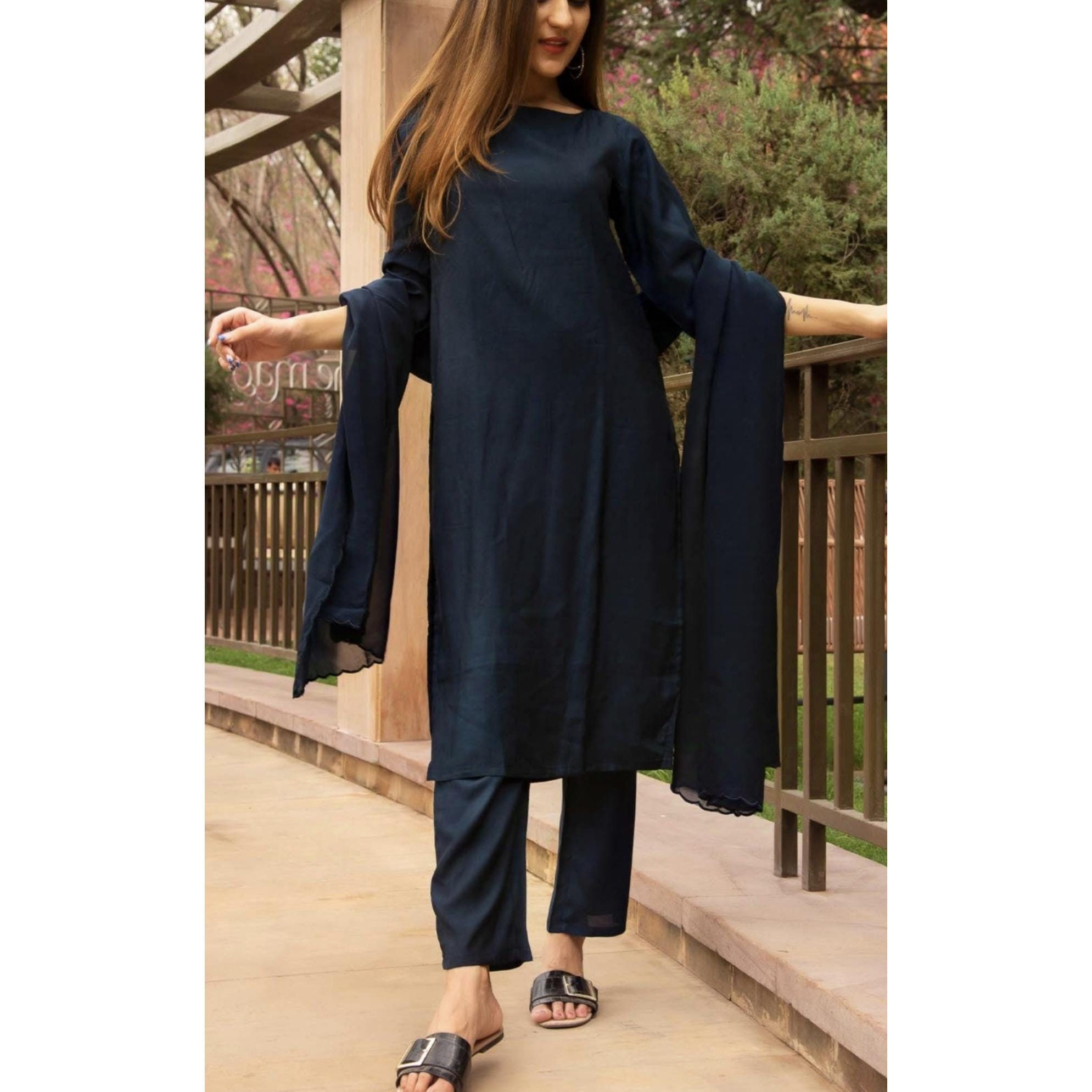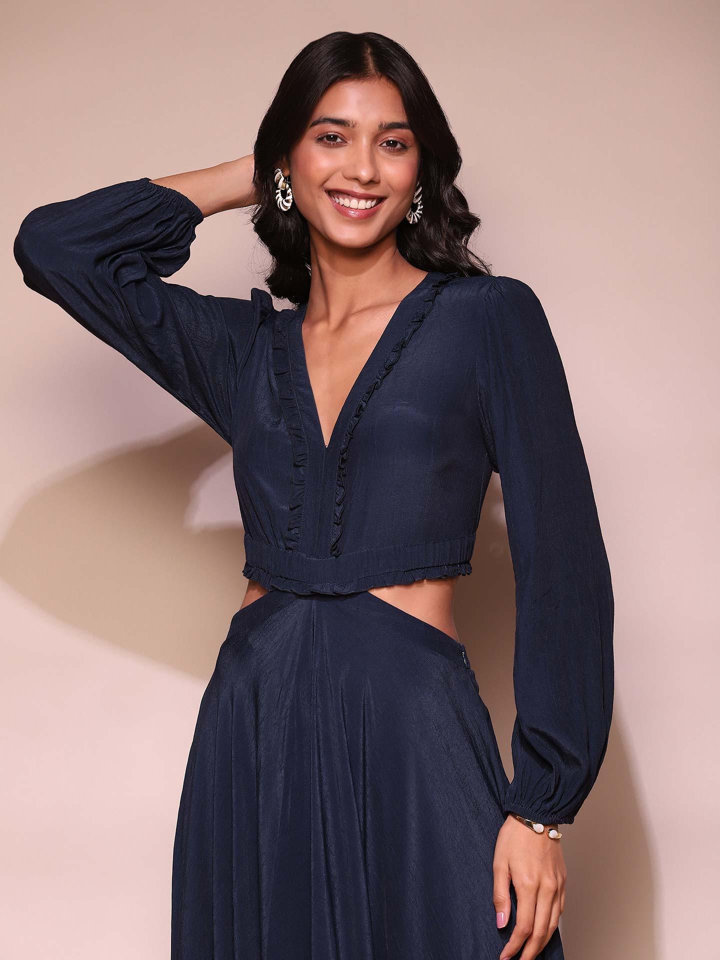 ritu kumar navy blue mirror work dress