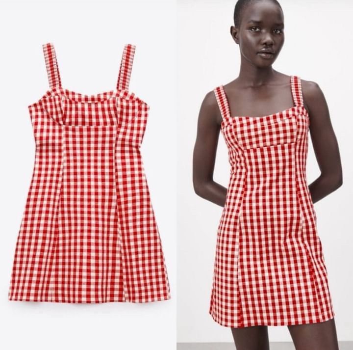 zara red gingham dress