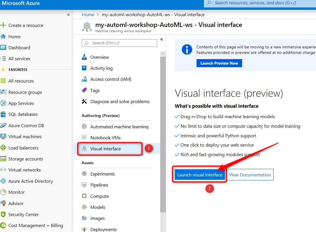 azure machine learning visual interface