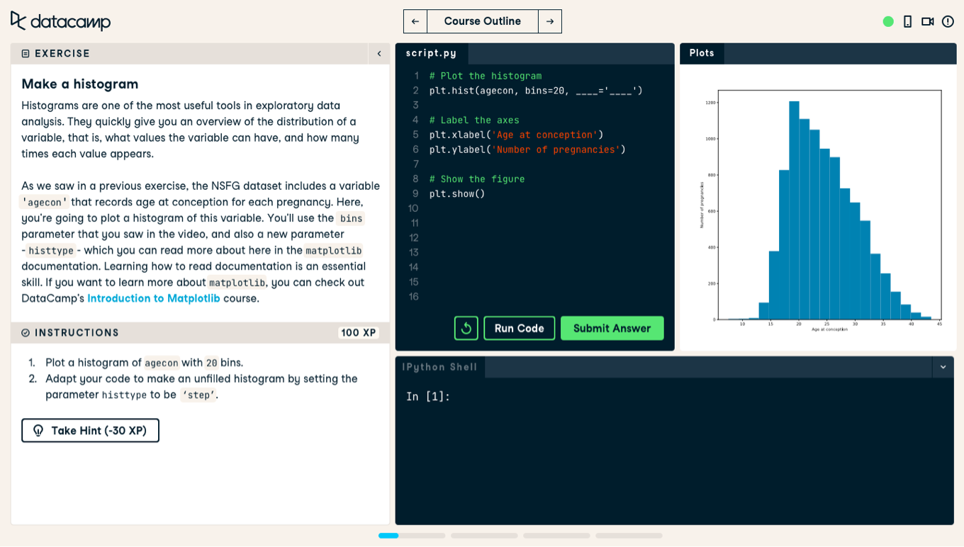 datacamp machine learning course