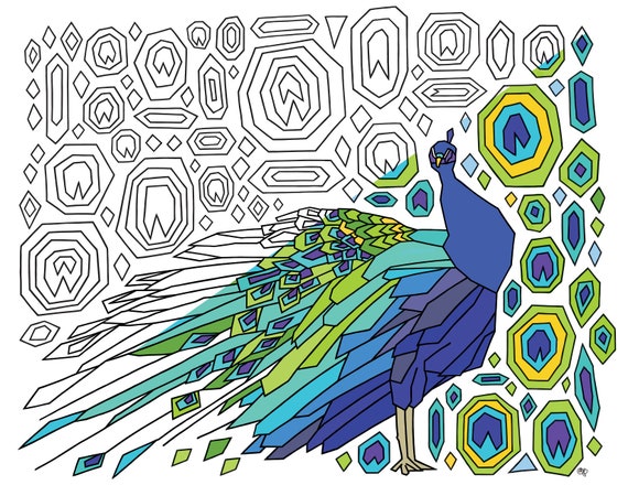 geometric peacock drawing