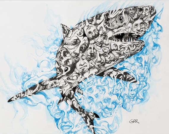 human shark drawing